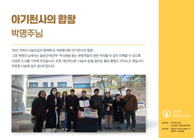 또한 개인적으로 나눔의집을 알리는 홍보 활동도 이어오고 계십니다.